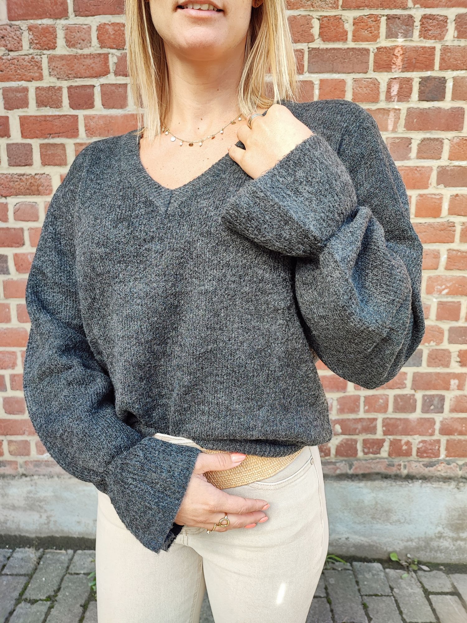 Pull gris avec manches évasées