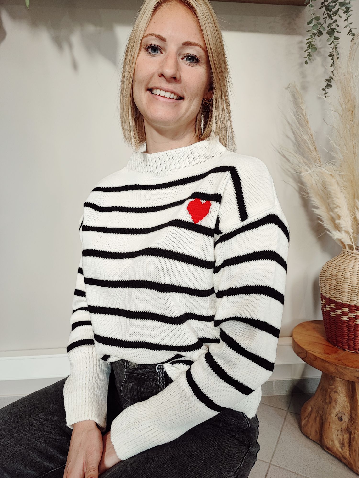 Pull ligné blanc